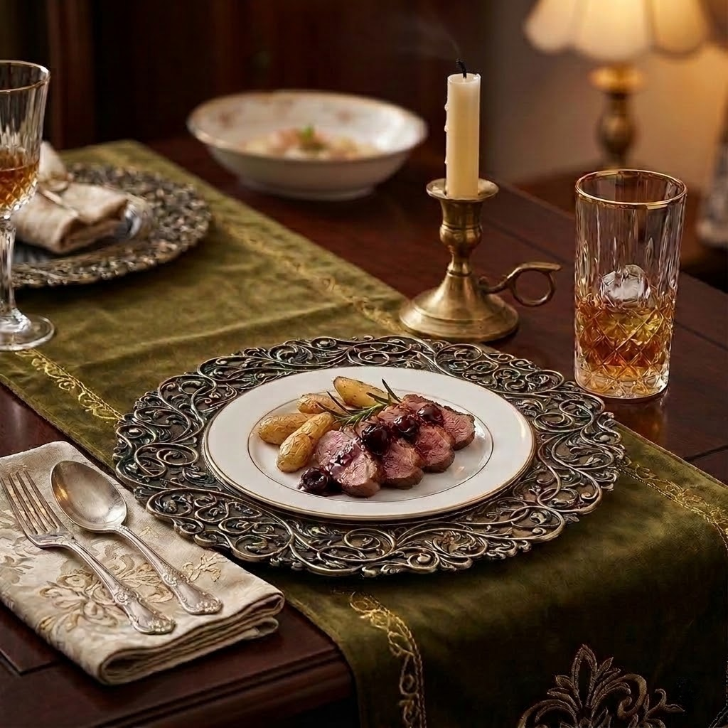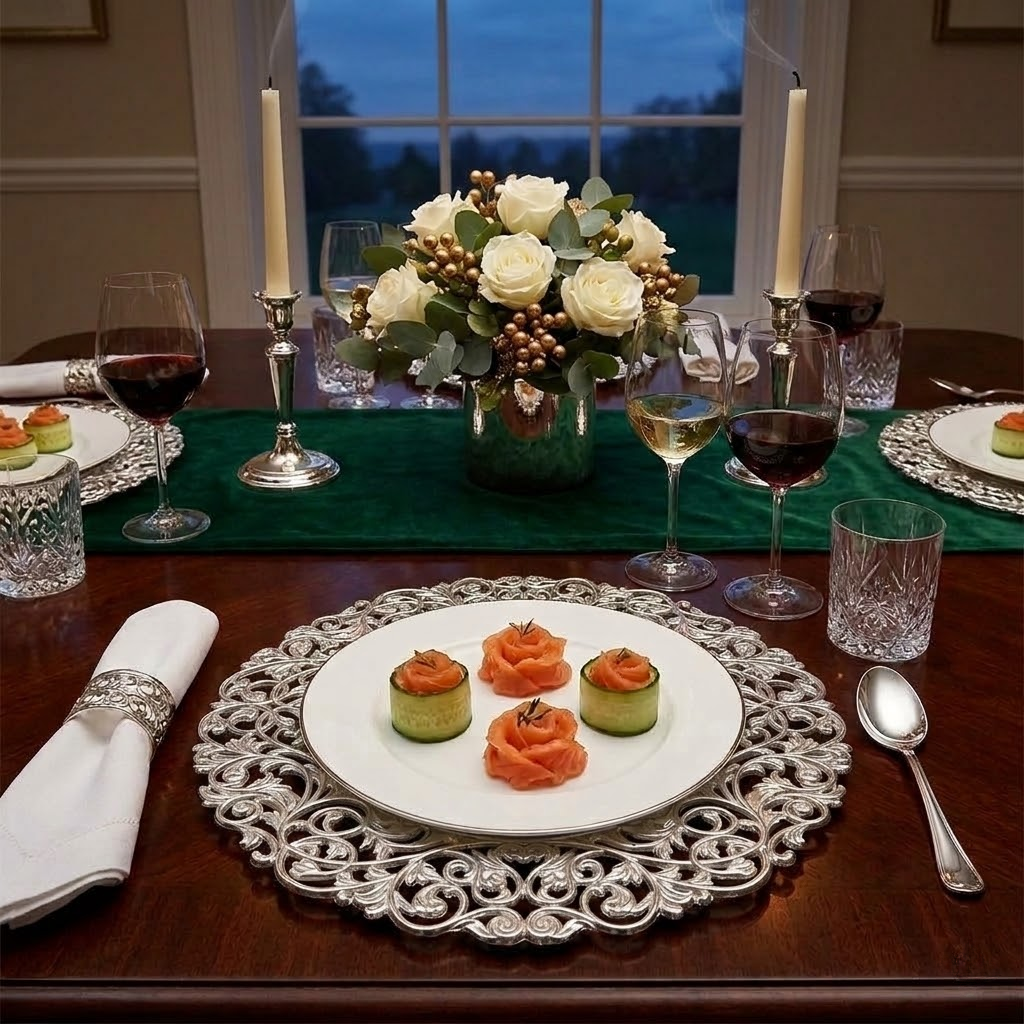 - Decorative Use Only: These plates are designed to be used as a decorative base under standard dinnerware. Direct contact with food is not recommended.